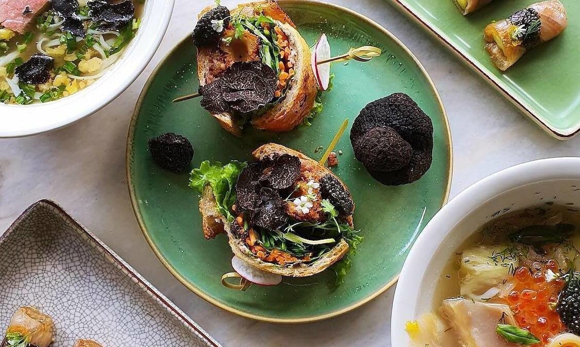 Franklin is also well-known for creating the $100 banh mi, a Vietnamese sandwich that comes with a side of fried sweet potatoes and caviar and is topped with French foie gras, truffle, sliced cucumbers, cilantro, and mint.